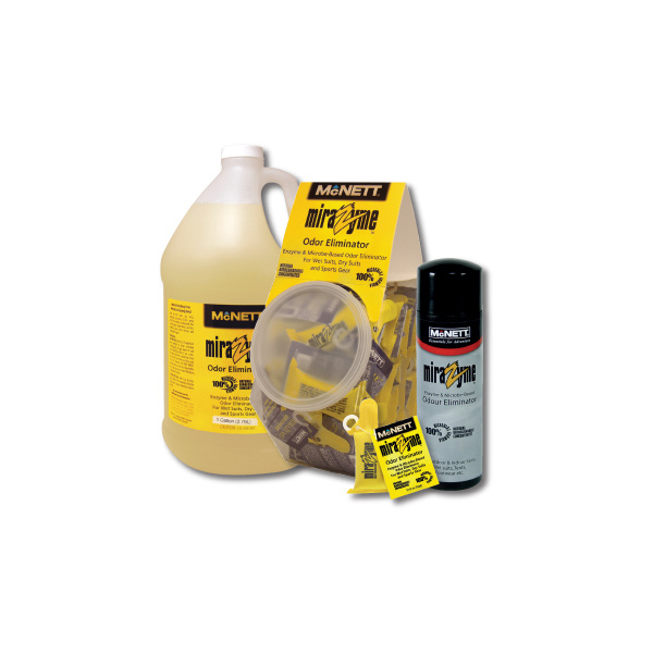 MiraZyme is extremely versatile quickly and. Gear Aid Odour Eliminator formerly McNett Mirazyme is a quick and effective dip or spray treatment for all personal or outdoor activity items. Previously known as Mirazyme this powerful and natural formula utilizes water-activated microbes to remove funky smells.